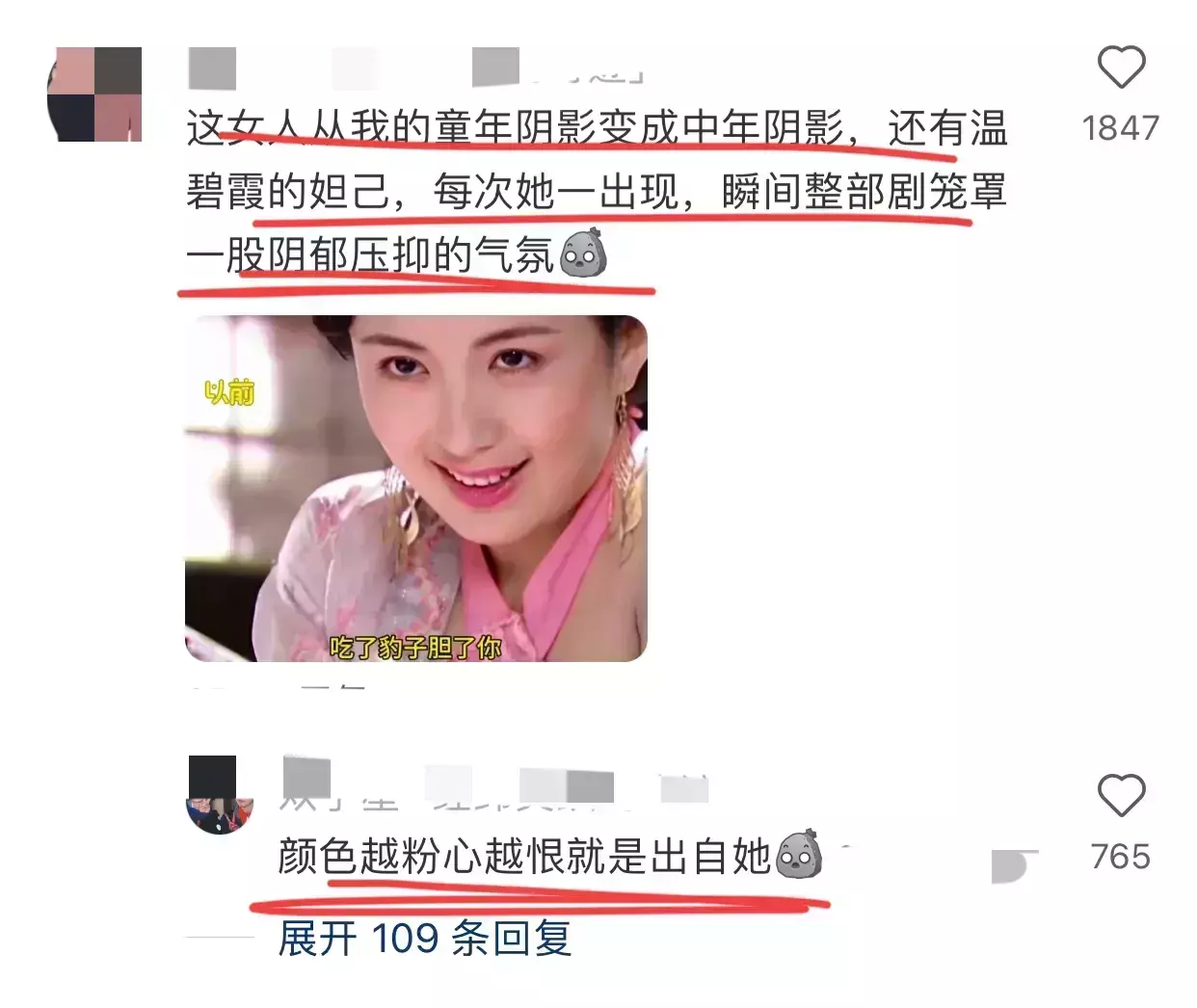 还有《西纪行》里的白骨精,她那妖媚又躁急的形象,于今还被东谈主津津乐谈。固然给小一又友们留住了"暗影",但也成为了中国电视剧史上经典的邪派变装之一。