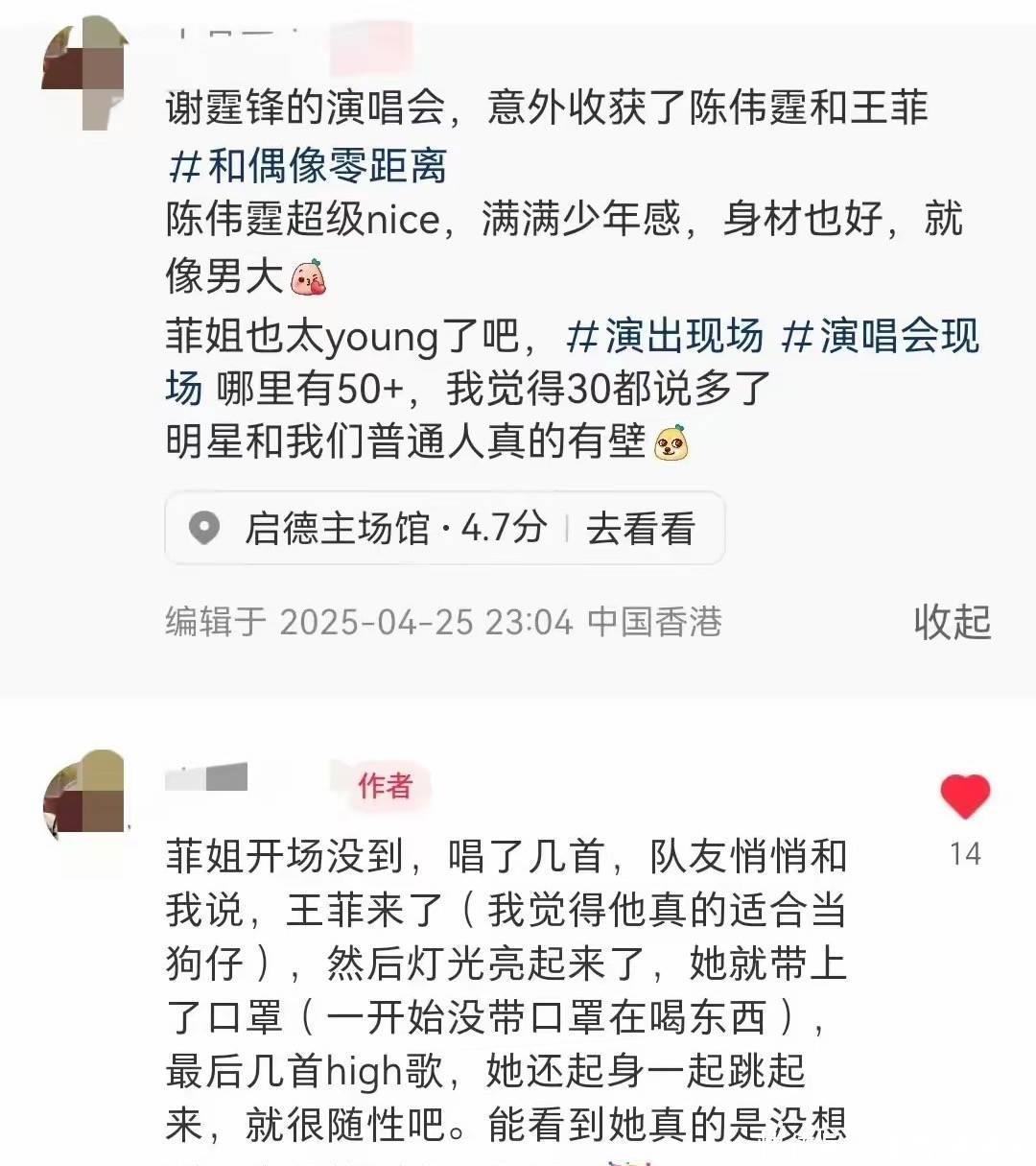 此次演唱会不仅促成了英皇的团建,还激发了香港艺东谈主的 “虚幻联动”,不外这些皆敌不外谢霆锋和王菲暗戳戳撒的糖。