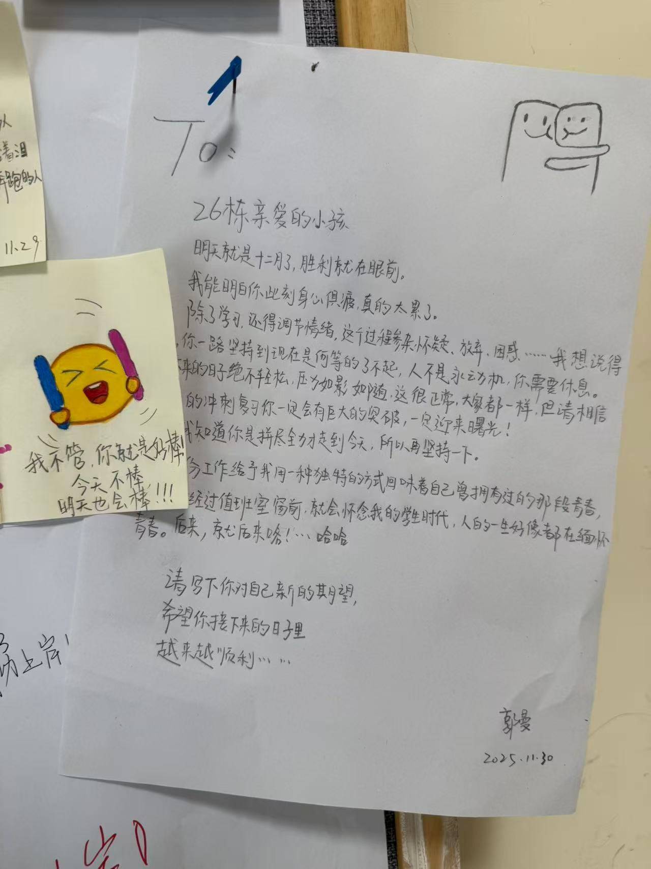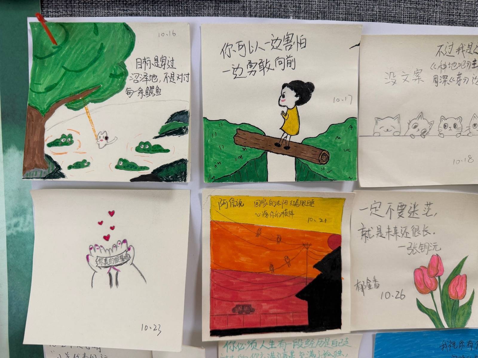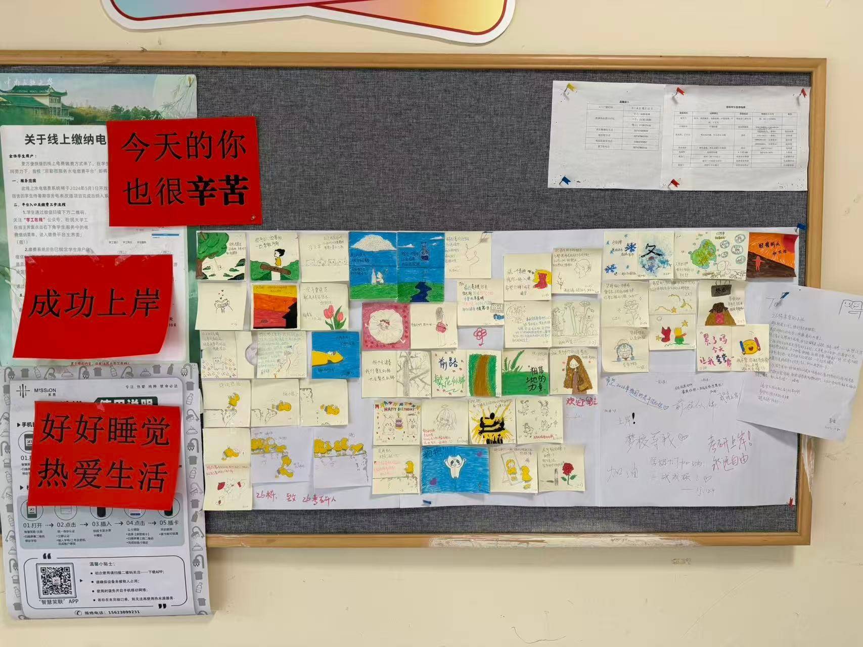 在备战考研的吴同学眼中,这个公告栏有着零散的温度:“大姨每天皆会更新的画作和案牍,让我忍不住天天来看。它不仅缓解了我的考研躁急,更让我感受到一种被传染的勇气。”吴同学认为郭曼姐姐不仅是我方孩子的母亲,更是总共这个词楼栋的母亲。”