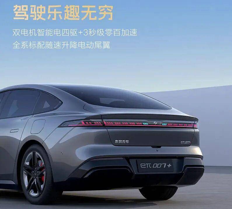 能源上,eπ007+配备的是双电机智能电四驱系统,官方说零百加快能作念到3秒多。这个性能水平,也曾摸到了一些百万级性能跑车的边儿。并且它还全系标配了随速升降的电动尾翼,车速上来的时代能提供下压力,加多行驶舒服性,看着也罕见帅。